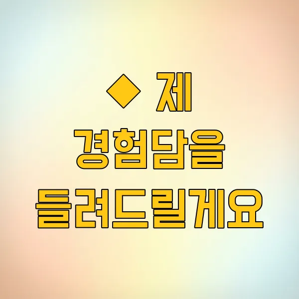 ◆ 제 경험담을 들려드릴게요